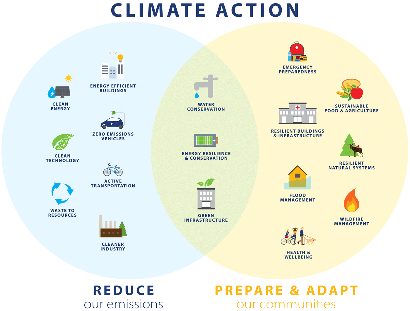 Today, community, public and private sector champions have seen the benefits of taking action on climate change through both reducing the greenhouse gas emissions (mitigation) and preparing for climate change impacts that are already unavoidable (adaptation). These two sides of climate action need to be integrated and considered simultaneously. We need to change how we have historically addressed these two concerns, which have typically been planned separately. “Low carbon resilience” (LCR) is a lens that brings together mitigation and adaptation strategies in planning, policy and implementation processes.